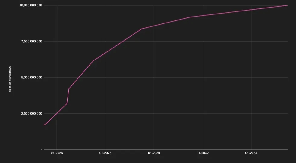 SPK farming is offered by the Sky ecosystem. Through Sky’s token farms, users can stake USDS to farm SPK. The SPK distribution follows the rules set forth in the Sky Atlas, which states that SPK will be distributed by Sky through these farms on the following schedule: